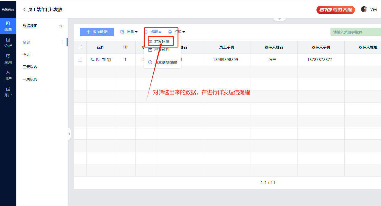 如何给指定的数据群发提醒?