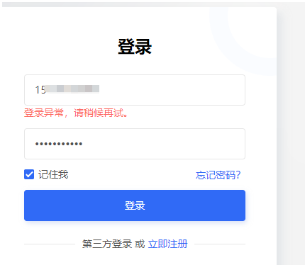 账号或密码多次输入错误时,会被系统拒绝登录,提示登录异常。需确认好正确的账号密码,间隔一段时间再登录。