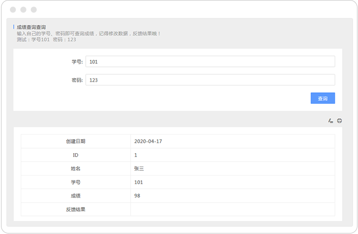 比如在线考试报名、业务申请等场景,查询提交的数据后希望能直接打印准考证、申请单。也是可以支持的,通过自定义打印功能,设置好数据打印的格式。这样填报者通过公开的查询页面,查询自己的报名情况后,直接就可以打印准考证了。