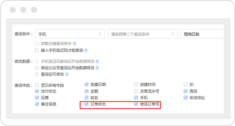 例如在线订单表,在表单编辑页面加入「订单状态」「快递单号」,并设置字段可见性为「管理员可见」,而在公开查询的查询字段设置中勾选它们。
