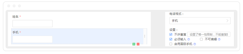 表单编辑手机、会员号(单行文本)等字段时,设置字段属性勾选【不许重复】,这样同一个手机号/会员号就只能下单一次了。