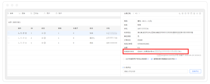 做生意讲究一个交易透明,通过表单搭建好在线商城平台,所有交易订单,你都可以在表单大师数据页面查看,每一笔订单的交易方式、支付时间、支付状态、支付金额,都清晰可查。