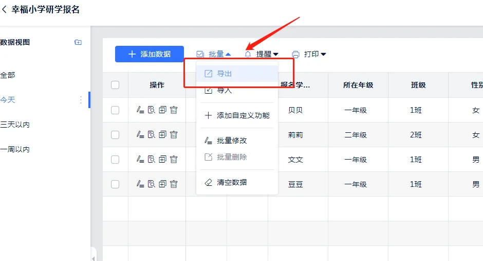 4.支持将数据筛选、批量导出,整理成表格,发给各个学校负责人进行核对。