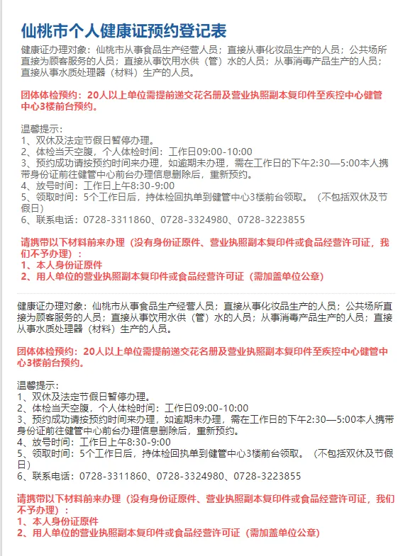 通过预约表单明确告知体检或办理健康证需要注意的事项,及办理流程,让市民有清晰的认知,效率更高;
