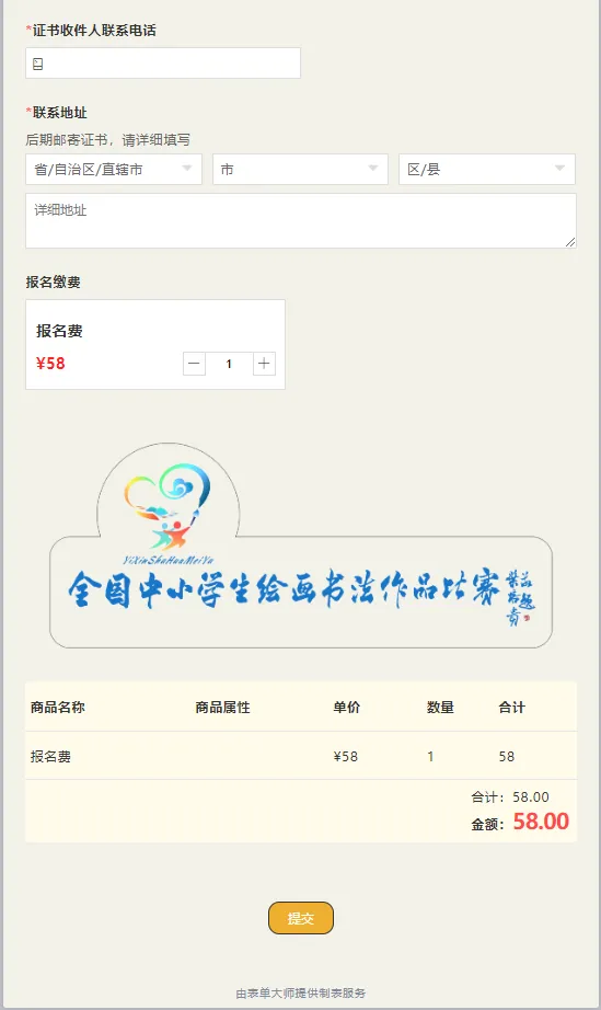 利用表单大师,【湖北艺馨美育科技有限公司】能为学员提供更便捷高效的线上报名、缴费支付、成绩查询等服务,将传统活动流程化繁为简,给参赛者和家长提供了更高质量的赛事服务。