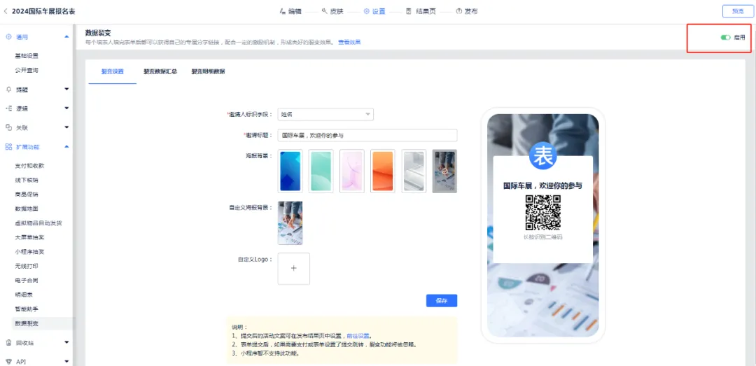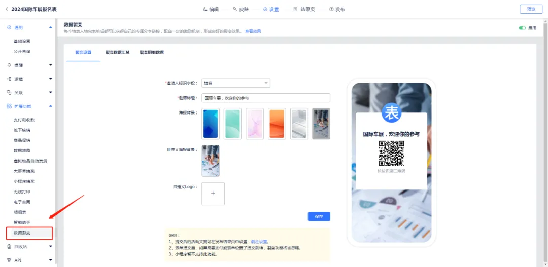 表单 > 设置 > 扩展功能 >数据裂变