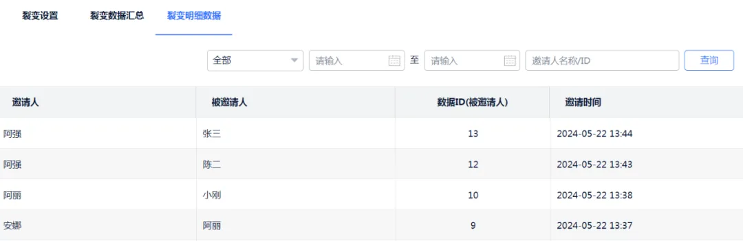 这里汇总了每一位邀请人和被邀请人的信息,以及邀请时间。