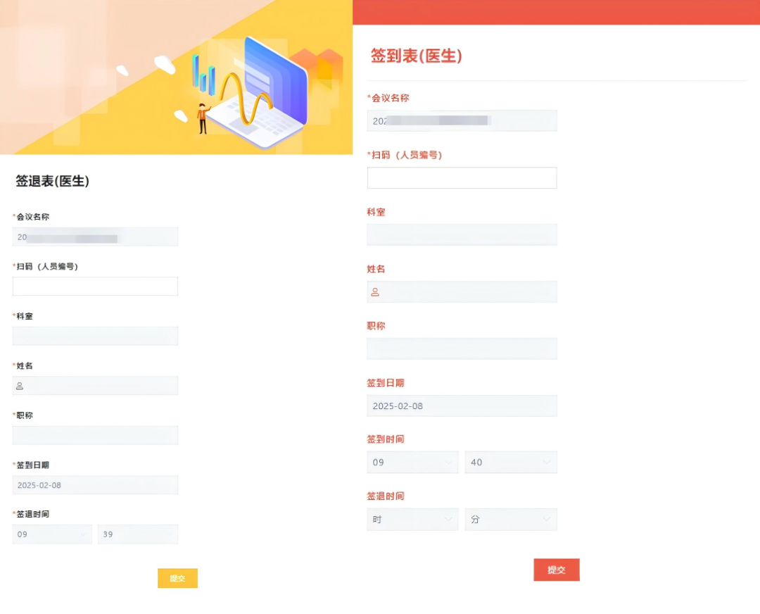 3、日常医院组织会议,需对参会人员做签到/签退统计;