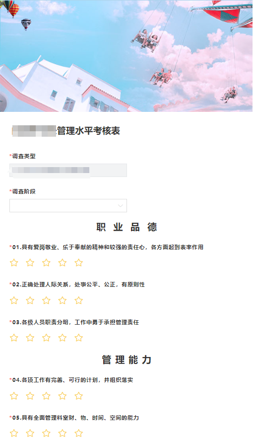 3、用表单大师创建各个科室之间的“满意度评分表”,有利于营造医院内部积极向上的协作氛围,促进整体服务质量的提升。