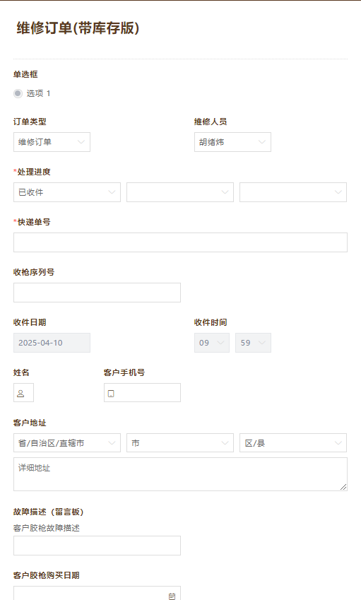 3.一个表单完成维修售后。