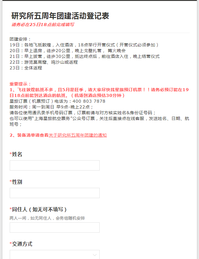 1.团建活动组织难:报名信息收集繁琐,需确认团建人员、交通工具、车次等,报名后频繁修改,耗时耗力;