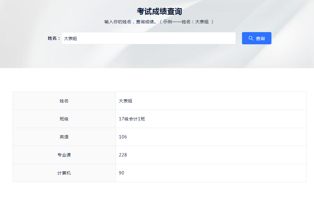 考试结束后,对表单设置公开查询功能,学生就可以输入自己的姓名或者其他信息查询考试成绩!