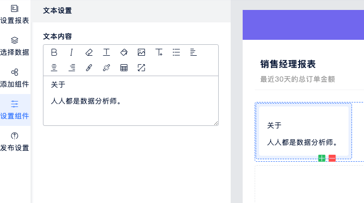 用于显示文本信息,可用于展示些报表数据的说明文字。