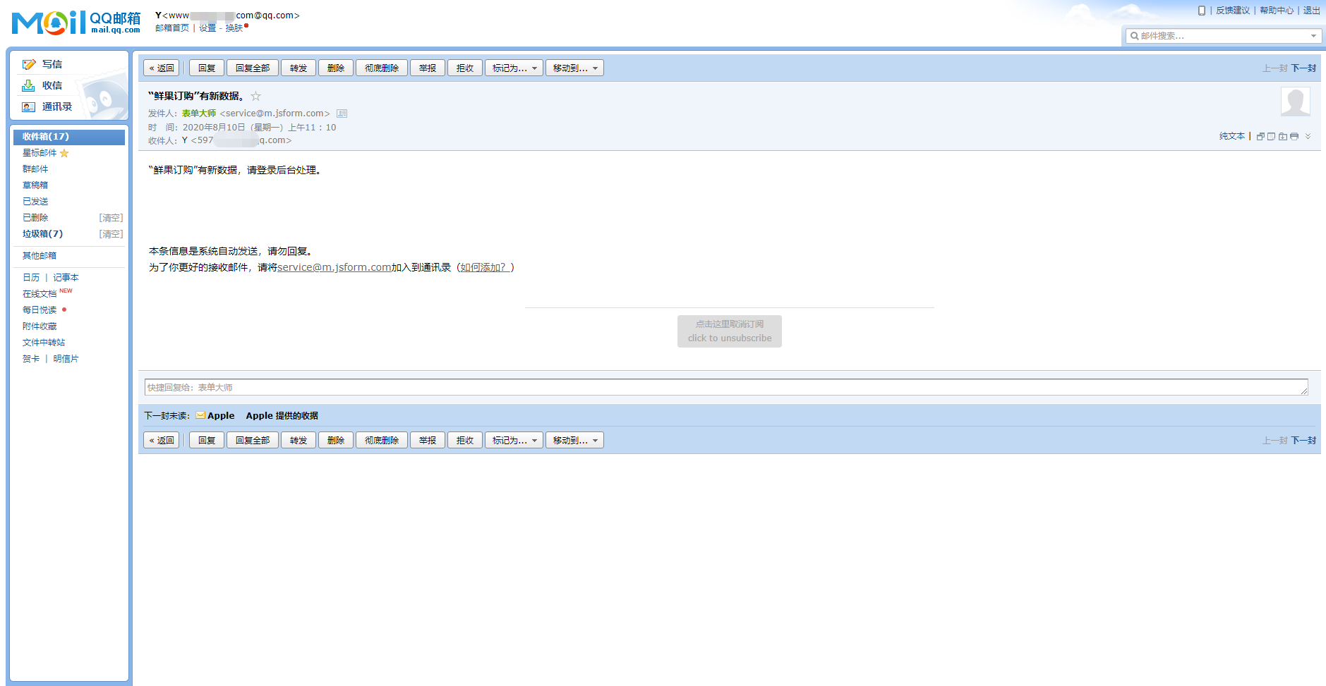 如需将邮件发送给表单中的邮箱地址,那么在表单中要有”电子邮箱”字段。