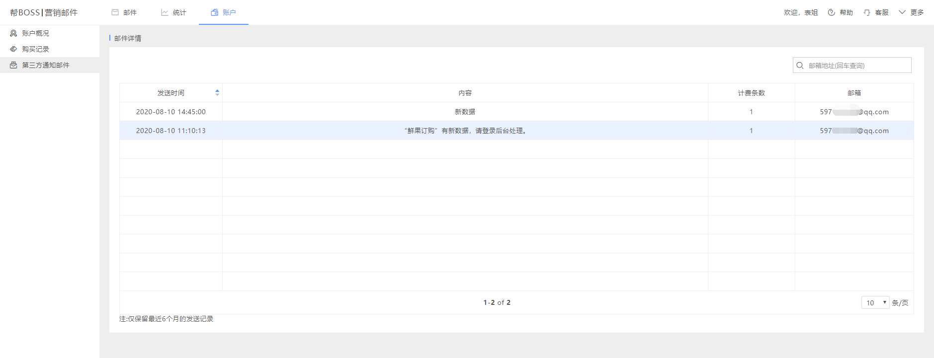 仅保留最近6个月的邮件发送记录