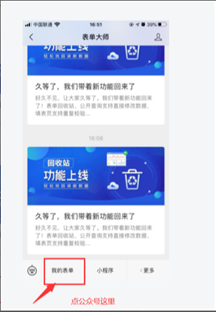 2.点击公众号下方菜单栏:“我的表单”按照向导进行绑定