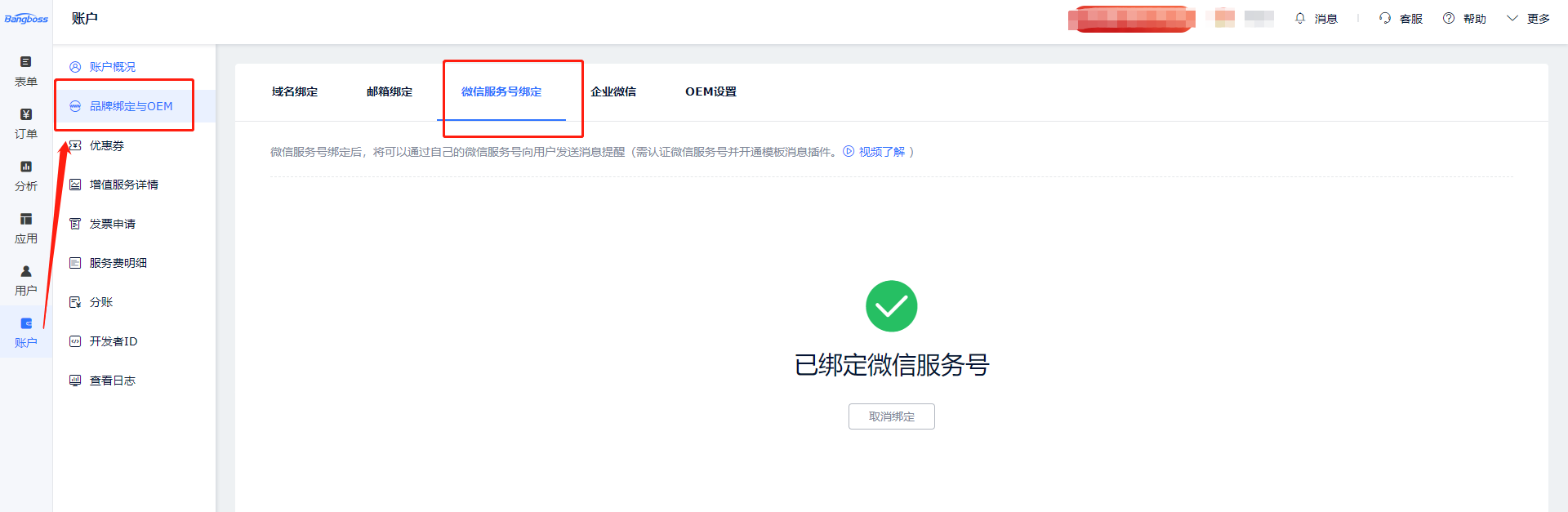 - 第一步:表单账户是需要绑定好微信服务号(必须是经过微信认证的微信服务号,并非订阅号和企业号。)