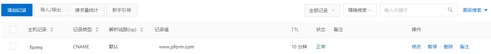 主机记录 如果是一级域名,则输入“@”即可;如果是二级域名,则自定义输入,例如填forms, diaocha等均可