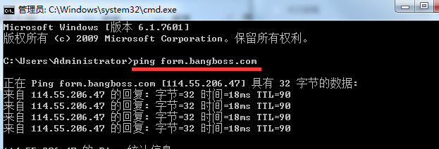 检查生效方法:点Windows桌面左下角的“开始”,在搜索框中输入“cmd”点击运行,然后输入命令“ping form.您的域名”,若能成功获得IP地址,即为生效。