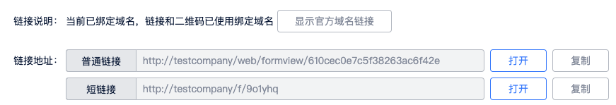 绑定完成后,选择一个表单,点击发布表单,将发布表单的链接地址如下图蓝框处替换成刚才绑定的域名。这样就可以通过自己的域名发布表单了。