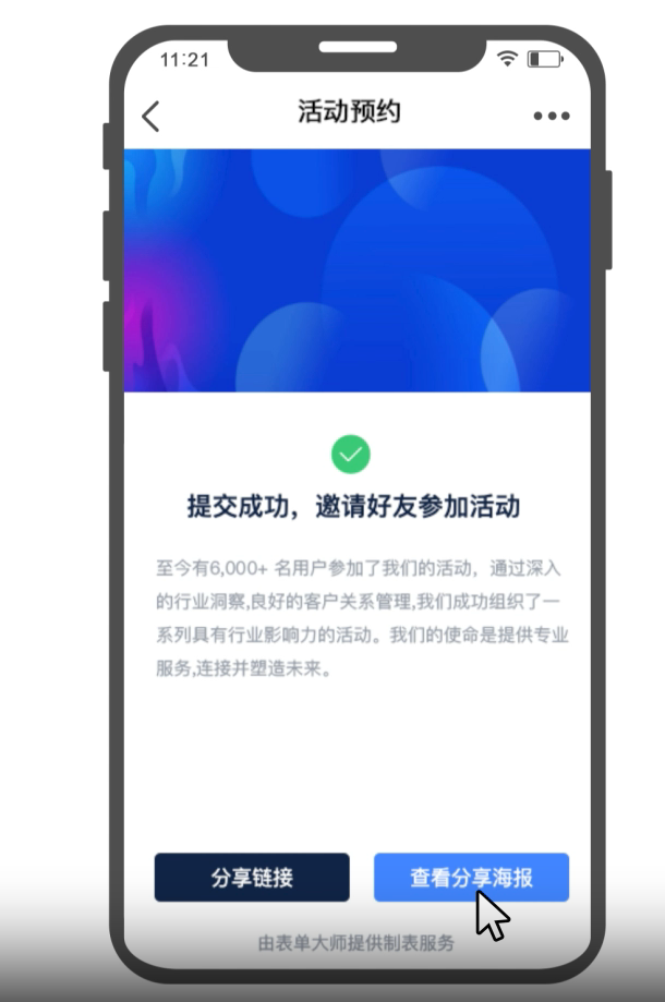 提交表单后,在提交页点击查看分享海报。