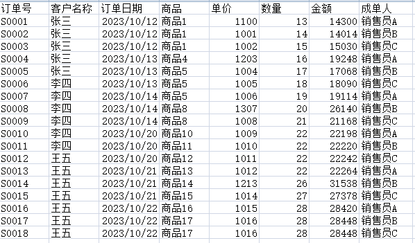 多维度报表用于有多个统计维度的报表,类似于Excel的透视图。以如下表单数据为例进行演示和说明: