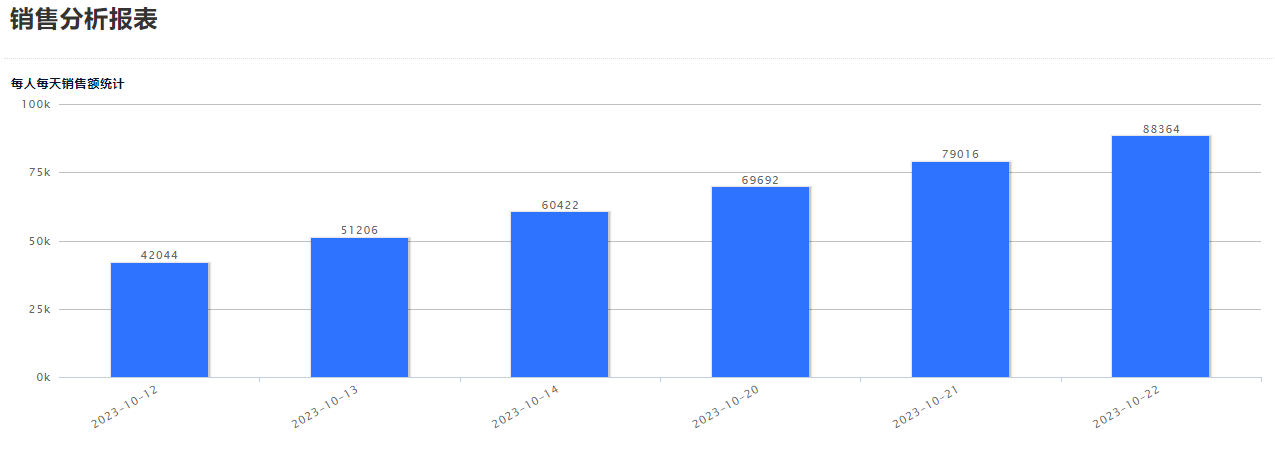 单维度组件(普通报表组件)显示效果,以柱状图为例(统计每天的销售总金额):
