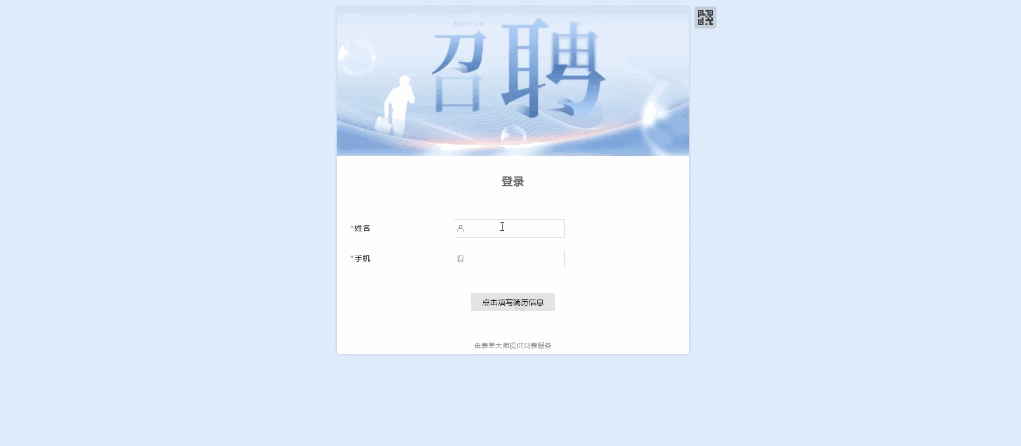 例如在简历登记时,填写完基本登录信息后,进入简历的填写界面,会自动带入上一步登录时填写的姓名和手机号。