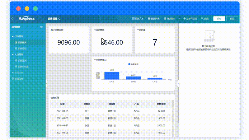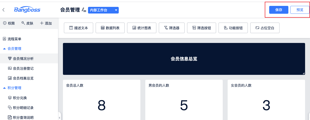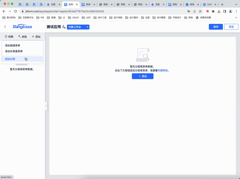- 设置完成后,点击保存按钮再点击预览,即可预览搭建的应用。支持预览时多个应用切换。