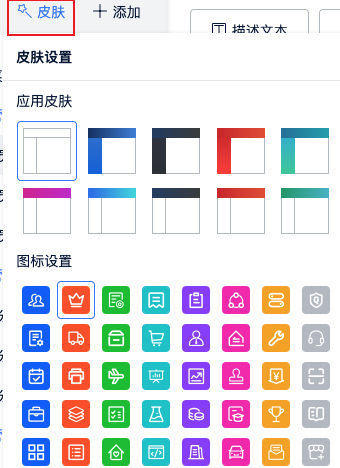 - 可设置应用列表页的图标,默认提供了30个图标样式