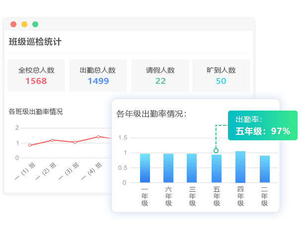 统计学生出勤情况,校导主任可实时刷新报表掌握当天晨检情况