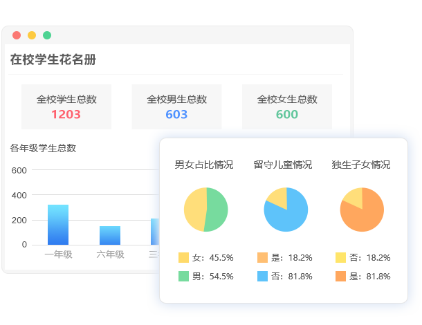 学生休学、转校学籍变动时,在线登记,系统自动更新,学生异动情况一清二楚