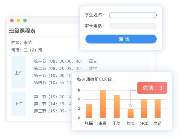 学校与家长之间保持友好互动,信息互通,如学生课表信息共享、成绩公示、家访管理