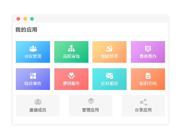 根据办公需求,提供丰富灵活的应用服务,满足个性化业务需求