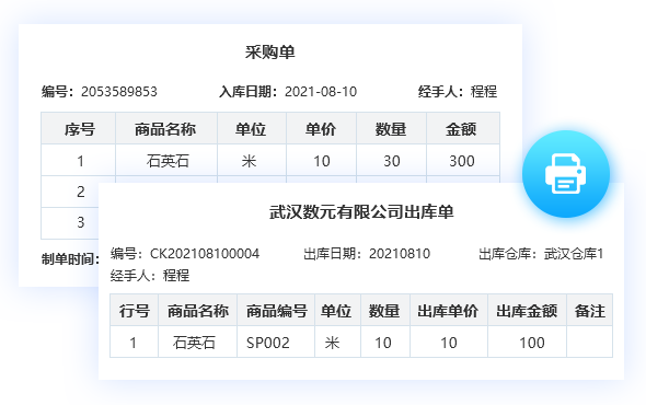 支持灵活配置,预置采购单、订单、出库单等单据模板,一键打印