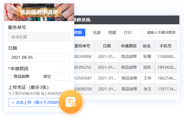 客户下单自动建档,支持自助查询下单记录、工单状态