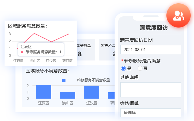支持智能派单、在线报修、上门维修、客户反馈等场景