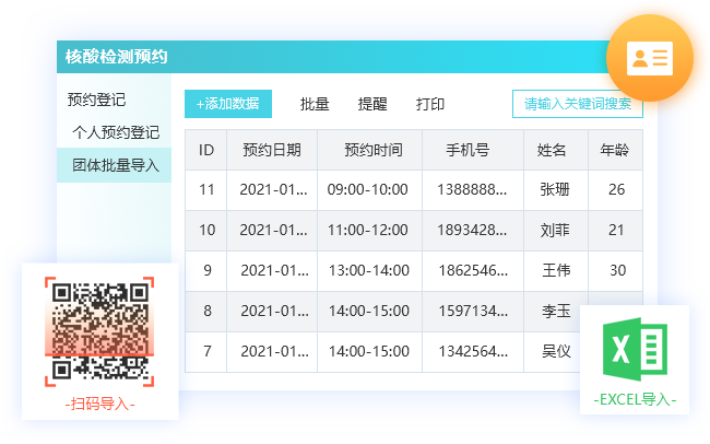 电脑手机端在线填报、后台Excel导入、扫码枪录入等
