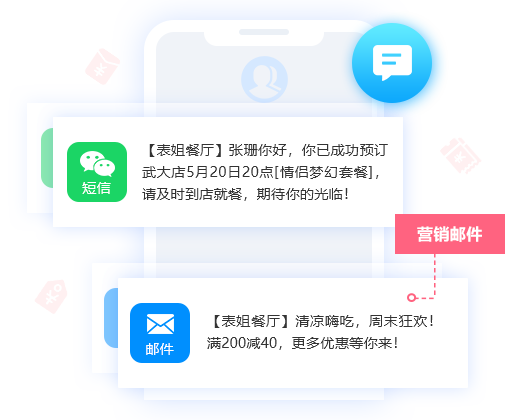 支持发送短信和邮件,还可以指定客户群精准投放;